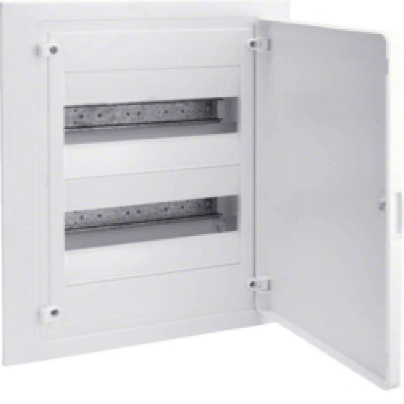 Dane techniczne Głębokość wbudowania [mm]: 72 Sposób montażu: Montaż podtynkowy Rodzaj pokrywy: Zamknięte Szerokość wyrażona liczbą modułów: 12 Liczba rzędów: 2 Materiał obudowy: Tworzywo sztuczne Stopień ochrony (IP): IP40 Numer RAL: 9010 Kolor: Biały Szyna DIN: Tak Wysokość [mm]: 382 Szerokość [mm]: 318 Głębokość [mm]: 98