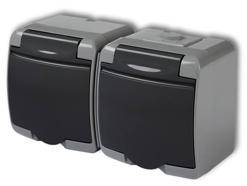 x(2P+Z) (klapka grafitowa; bez przesłon) popielaty / grafitowy hermetyczny IP 54, 16A 250V~ (30GHE-2)