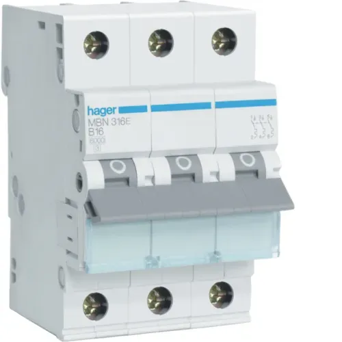 MCB Wyłącznik nadprądowy 6kA 3P B 16A MBN316E Producent: HAGER POLO Indeks producenta: MBN316E Seria produktu u dostawcy: Wyłączniki nadprądow Kod EAN: 3250614313066