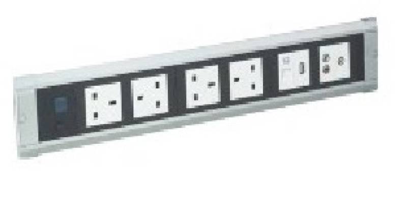 Panel do montażu 6 modułów 45x45mm. Posiada przycisk ON/OFF. Wymiary: zewnętrzne: 490x95 mm, montażowe: 465x75mm. Kolor: szare aluminium. DS.80.01