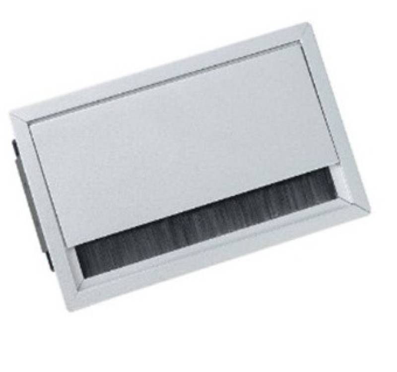 PICK-UP: Kaseta z odchylaną klapką do zabudowy, 6 modułów 45x45 mm. Głębokość: 70 mm. Maksymalna grubość blatu: 40 mm. Kolor: szczotkowane aluminium. DS.50.03