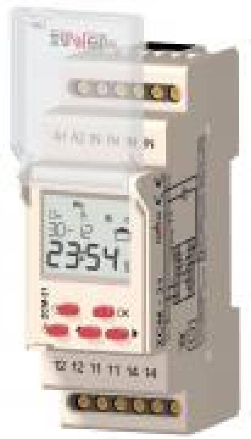 Opis: Cyfrowe zegary sterujące ZCM-31 służą do realizacji funkcji czasowych w układach automatyki i sterowania. Włączenie/wyłączenie urządzenia związane jest ze wschodem i zachodem słońca (brzask i zmierzch cywilny). W obliczeniach czasu wschodu i zachodu słońca wykorzystywana jest informacja o współrzędnych geograficznych miejsca zainstalowania zegara, bieżąca data oraz przesunięcie względem czasu uniwersalnego. Układ oblicza koniec zmierzchu cywilnego, czyli fazę, w której środek tarczy słonecznej znajduje się na 6o kątowych poniżej horyzontu - tarcza słoneczna nie jest widoczna ale niebo podświetlone jest rozproszonym światłem słonecznym. Układ dodatkowo posiada funkcję programowanej przerwy nocnej oraz możliwość przesunięcia wyliczonego czasu wschodu/ zachodu słońca w zakresie ±120 min. Konstrukcja obudowy umożliwia zamontowanie układu na szynie TH 35 oraz ewentualne zaplombowanie urządzenia. Konstrukcja układu gwarantuje bateryjne podtrzymanie wszelkich nastaw przy braku napięcia zasilającego.