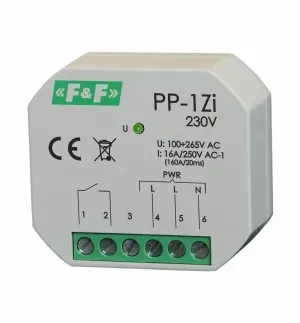 Dane techniczne zasilanie PP-1P 24V 7÷30V AC / 9÷40V DC PP-1P 230V 100÷265V AC PP-1Zi 24V 7÷30V AC / 9÷40V DC PP-1Zi 230V 100÷265V AC PP-2Z 24V 7÷30V AC / 9÷40V DC PP-2Z 230V 100÷265V AC PP-2Zi 24V 7÷30V AC / 9÷40V DC PP-2Zi 230V 100÷265V AC prąd obciążenia PP-1P 24V <16A 250V AC PP-1P 230V <16A 250V AC PP-1Zi 24V <16A (160A/20ms) 250V AC PP-1Zi 230V <16A (160A/20ms) 250V AC PP-2Z 24V <16A 250V AC PP-2Z 230V <16A 250V AC PP-2Zi 24V <16A (160A/20ms) 250V AC PP-2Zi 230V <16A (160A/20ms) 250V AC styki PP-1P 24V 1NO/NC PP-1P 230V 1NO/NC PP-1Zi 24V 1NO PP-1Zi 230V 1NO PP-2Z 24V 2NO PP-2Z 230V 2NO PP-2Zi 24V 2NO PP-2Zi 230V 2NO kategoria użytkowania AC-7a czas zadziałania maks. 40ms czas wyłączenia maks. 20ms trwałość mechaniczna min. 5×106 cykli wskaźnik zasilania LED pobór mocy <0,6W przyłącze zaciski śrubowe 2,5mm2 moment dokręcajacy 0,4Nm wymiary O54 (?48×43mm), h=25mm montaż w puszce podtynkowej O60 stopień ochrony IP20