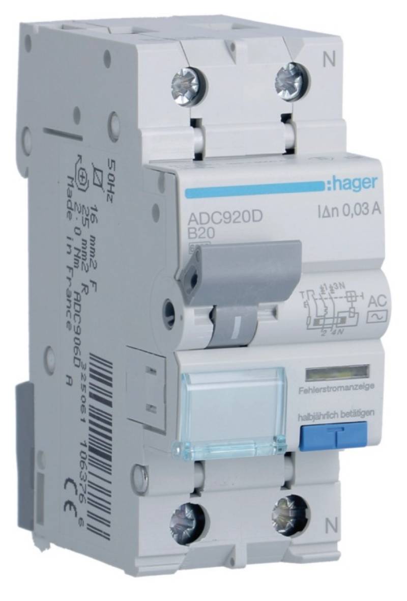 RCBO Wyłącznik różnicowoprądowy z członem nadprądowym 1P+N 6kA B 20A/30mA Typ AC (ADC920D) Producent: HAGER POLO Indeks producenta: ADC920D Seria produktu u dostawcy: Wyłączniki różnicowo Kod EAN: 3250611063773